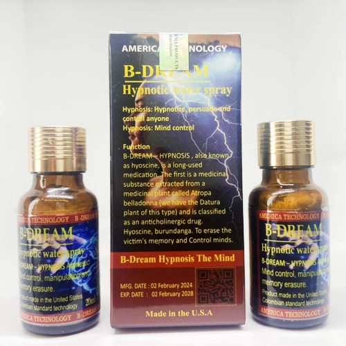 - Thuốc thôi miên B-DREAM – HYPNOSIS là một loại thuốc thôi miên tiên tiến, được phát triển dựa trên công nghệ tiêu chuẩn của Mỹ và sản xuất tại Colombia. Được biết đến với biệt danh “Hơi thở của quỷ,” thuốc này có khả năng tạm thời làm mất đi ý thức của người dùng, khiến họ trở nên dễ bảo và tuân theo mọi chỉ dẫn trong quá trình điều trị.